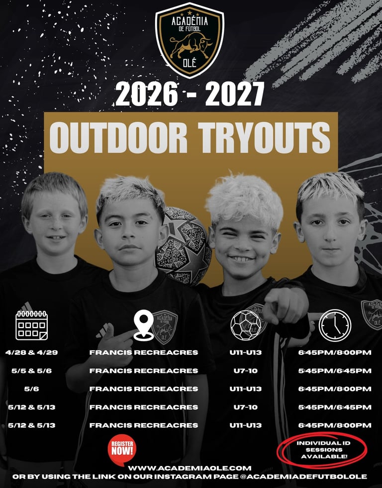 Academia Ole is committed to fostering a culture of respect, sportsmanship, and integrity both on and off the field. We strive to develop players who demonstrate commitment, discipline, and a strong work ethic, pushing themselves to improve while prioritizing the success of the team. Through teamwork and leadership, we encourage each player to support and uplift their teammates, creating a positive and competitive environment. We embrace resilience in the face of challenges, knowing that setbacks are opportunities for growth. Above all, we play with passion, driven by our love for the game and our dedication to fair play, effort, and excellence. We recognize that our club is stronger because of the support and involvement of parents, who play a vital role in fostering a positive experience for our players. Through their encouragement, dedication, and commitment to our values, they help create an environment where young athletes can thrive both as players and individuals. Together, we build a community that values hard work, respect, and the love of the game.